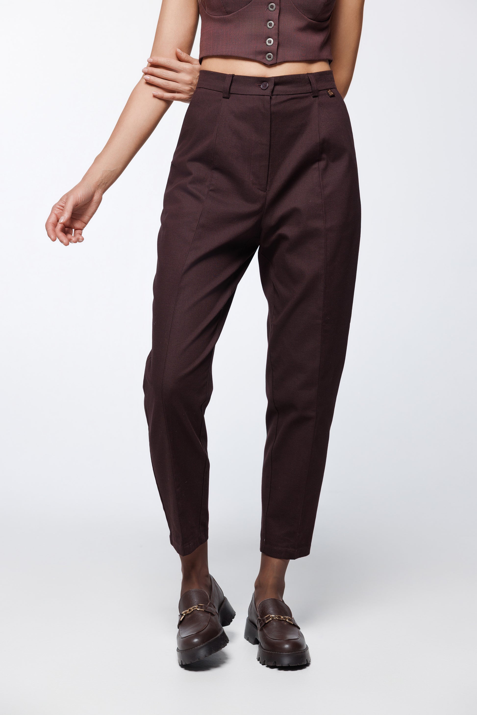 Tailored Carrot - Leg trousers In Brown Cotton Blend